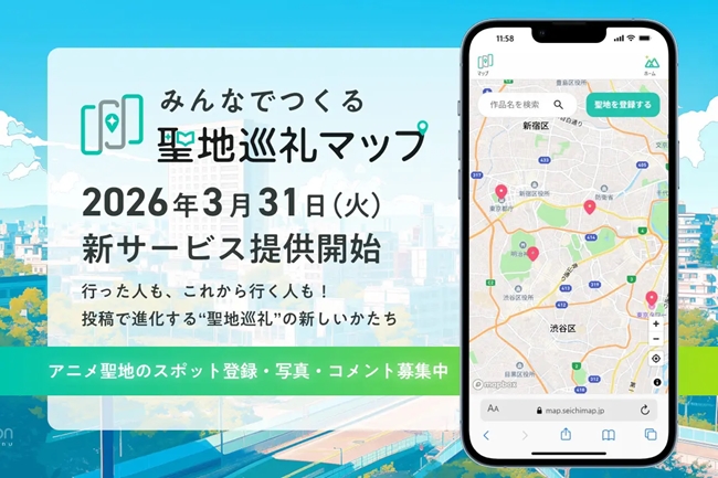 株式会社オリグレスは3月31日、ユーザー参加型のウェブサービス「みんなでつくる聖地巡礼マップ」を提供開始した。 同サービスは、日本全国のアニメ作品の舞台(聖地)を地図上で可視化するウェブサービス。同社が2025年8月に提供開始した総合アニメ体験メディア「聖地巡礼マップ」の記事コンテンツと連動しながら、ユーザー自身が聖地の登録や写真の投稿、コメントの投稿などを行える機能を実装した。 記事コンテンツと […]