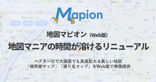 株式会社ONE COMPATHは3月24日、地図情報サービス「Mapion」のウェブ版をアップデートして、地図データをベクトル形式に刷新したと発表した。 今回のリニューアルでは、地図データのベクトル化により表示基盤を刷新し、従来のサーバーから画像として配信されるラスター地図と異なり、拡大・縮小時の滑らかな表示や細かな境界線や地形の視認性向上など、高解像度の環境でも美しく表示されるようになった。地図 […]