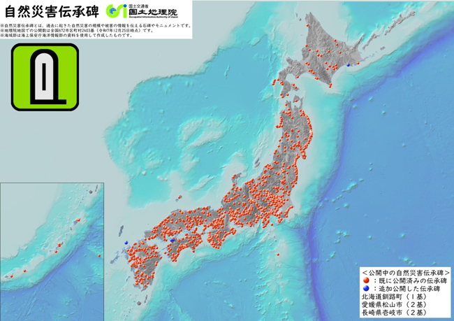 国土地理院は4月24日、ウェブ地図サービス「地理院地図」で公開している自然災害伝承碑について、新たに2市区町村9基を追加公開した。 自然災害伝承碑とは、過去に発生した津波や洪水、火山災害、土砂災害など自然災害の様相や被害状況などが記載された石碑やモニュメントで、当時の被災状況を伝えるとともに、被災場所に建てられていることが多く、これらを地図上で伝えることで地域住民の防災意識向上に役立つものと期待さ […]